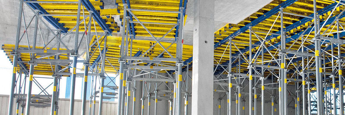Stützenschalung: Bei dieser Schalungsform kommen vorwiegend vorgefertigte Stützen-Rahmenkonstruktionen zum Einsatz.